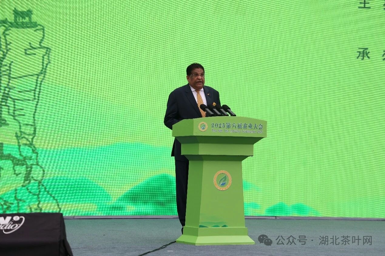 斯里兰卡驻华大使马金达·贾升和(H.E. Majintha Jayesinghe)致辞,他回顾中斯茶业百年合作历史,呼吁加强中斯茶文化交流与贸易合作。